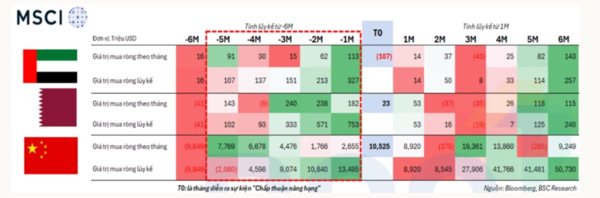 BIDV 증권(BSC) 통계에 따르면, 파키스탄은 시장 업그레이드 승인 전에 외국인 투자자들이 3억2,700만 달러를 순매수했다. 중국에서도 외국인 투자자들이 130억 달러 이상을 매수했다. 이 그룹은 발표 당월에 주식을 계속 매집하다가 이후 점차 줄이는 경향을 보인다.