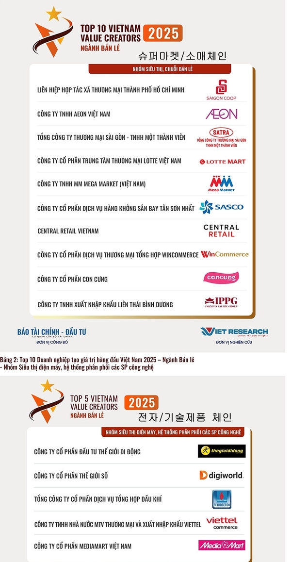 베트남의 선도 가치창출 기업 국가 연구 프로그램의 일환으로, 비엣 리서치(Viet Research)가 재무부 산하 재정투자신문(Finance - Investment Newspaper)과 협력해 2025년 베트남 가치창출 선도기업 Top 10 - 소매업 부문을 발표했다. 글로벌 비즈니스 환경의 변동성·불확실성·복잡성·모호성(VUCA)이 심화되는 가운데, 성공적인 기업들은 가치 추출 모델에서 가치 창출 모델로의 전략 전환을 통해 기업, 주주, 직원, 사회에 지속 가능한 장기 가치를 창출하고 있다.