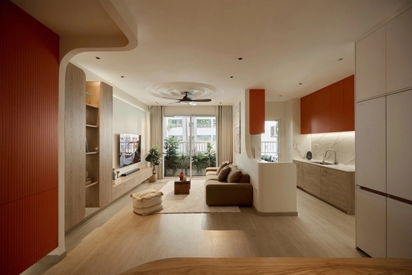 호치민시에 위치한 침실 두 개짜리 아파트가 3대가 함께 사는 가족의 필요에 맞춰 라비아 컨셉 VN(Lavia Concept VN)에 의해 완전히 리모델링되었다. 약 50일의 공사 기간과 5억 동의 비용을 들여, 공간은 4개의 침실과 6인 가족이 사용할 수 있는 기능적인 공간으로 재구성되었다. 디자인은 다기능 가구, 밝은 색상의 목재, 그리고 차분한 색조를 사용하여 개방감을 유지하면서 개인 공간과 공용 공간의 균형을 맞추었다.