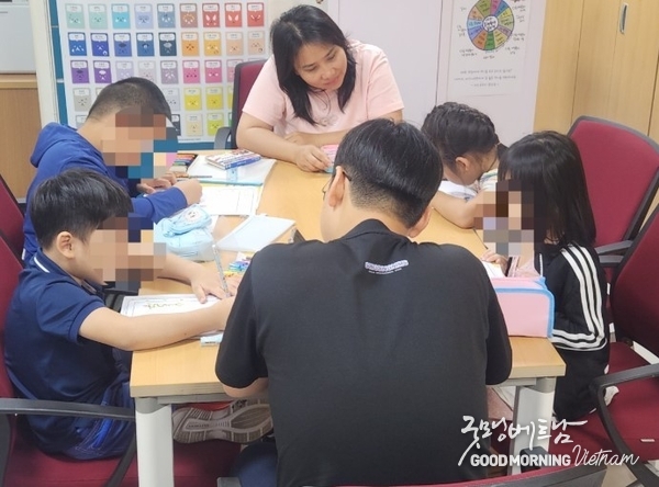 ▲ 소수 정예 팀티칭: 1개 학급당 4~5명의 소규모 수업으로 운영하며, 한국인 교사와 베트남인 보조교사가 1팀으로 배정, ‘팀티칭’ 방식을 도입해 언어적 간극을 세밀하게 메웠다.