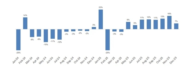 지역별 성과는 다소 차이가 있었지만, 전국적인 회복세가 나타났다. 중부 지역은 2025년 평균 14.24%의 성장률을 기록하며 회복세를 주도했는데, 이는 2024년 대비 16.87%포인트 증가한 수치다. 2024년에 10.63%라는 가장 큰 폭의 감소세를 보였던 북부 지역은 2025년에 7.87%의 성장률을 기록하며 큰 반전을 이루었다.
