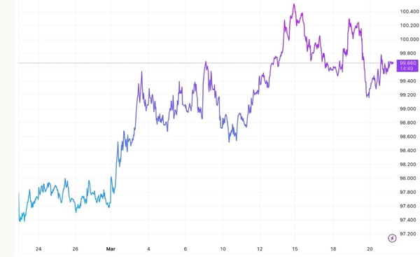 [굿모닝베트남] 2026년 3월 23일 오전 중동 분쟁이 극도로 악화되면서 미국 달러가 안전자산으로 급부상하고 있습니다. 달러인덱스(DXY)는 주요 6개 통화 대비 1% 이상 상승해 99.66포인트를 기록했다. 분쟁 해결 전망이 어두워지면서 글로벌 시장 전반에 위험 회피 심리가 확산되고 있다.