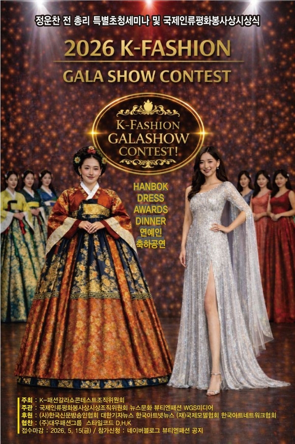한편 ‘2026 K-패션갈라쇼콘테스트’ 참가 신청은 오는 5월 15일 오후 6시까지 이메일을 통해 가능하며, 자세한 내용은 네이버 ‘뷰티엔패션’ 블로그 공지를 통해 확인할 수 있다.