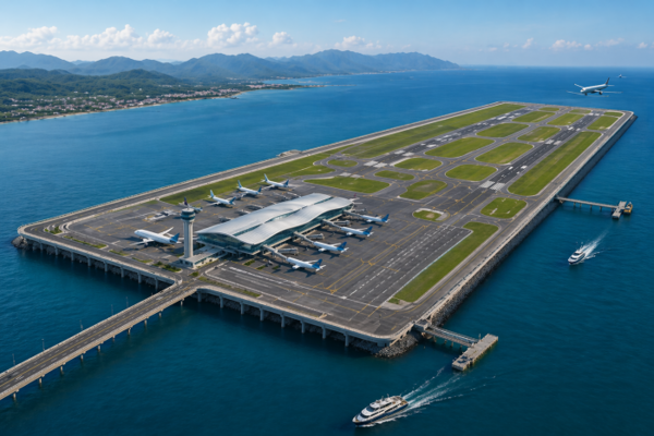 【굿모닝미디어 | 건설/인프라】 베트남에 사상 최초의 해상 공항이 건설될 전망이다. 건설부는 최근 '2021~2030년 국가 공항 시스템 계획 조정안(2050년 비전 포함)'을 관련 당국에 제출하고, 칸호아성 반퐁(Van Phong) 경제특구 내 해상 공항 건설에 대한 본격적인 승인 절차에 착수했다.