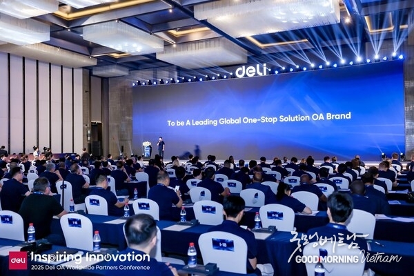 (굿모닝베트남미디어) 닝보, 중국 2025년 10월 14일 -- 델리그룹(Deli Group)이 10월 12일 중국 저장성 닝보에서 '영감을 주는 혁신(Inspiring Innovation)'을 주제로 2025 글로벌 사무 자동화 파트너 콘퍼런스(2025 Worldwide Office Automation Partners Conference)를 성공적으로 개최했다. 세계적인 문화•기술 산업 그룹인 델리는 이번 행사에 전 세계 70여 국가 및 지역에서 온 고위 경영진과 약 200명의 우수 유통 파트너 대표를 초청해 사무기기 및 프린팅 분야의 혁신 트렌드를 논하고 글로벌 협력을 위한 새로운 기회를 모색했다.