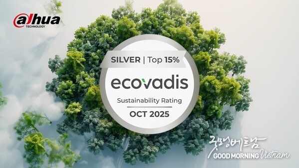 항저우, 중국 2025년 10월 14일 -- 세계적인 영상 중심 AIoT 솔루션•서비스 기업인 다후아 테크놀로지(Dahua Technology)가 글로벌 비즈니스 지속 가능성 평가기관인 에코바디스(EcoVadis)로부터 '실버 메달(Silver Medal)'을 수상했다. 이번 권위 있는 수상을 통해 다후아는 전 세계 평가 대상 기업 중 상위 15%에 오르며 환경•사회•윤리적 경영 관행을 강화하기 위한 노력을 인정받았다.