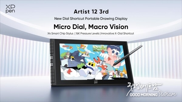 (굿모닝베트남미디어) 로스앤젤레스 2025년 10월 20일 -- 엑스피펜(XPPen)이 최신 기술을 집약한 'Artist 12 3rd'를 전격 공개했다. 이 제품은 새로운 다이얼 단축키와 최첨단 X4 스마트 칩 스타일러스를 탑재한 휴대용 태블릿으로, 콤팩트한 디자인에 포터블 크리에이션 트렌드를 주도할 주요 기능 업그레이드를 통합했다. 드로잉 디스플레이(drawing display) 카테고리에서 가장 주목할 만한 업데이트로 평가받는 Artist 12 3rd는 혁신적인 X-Dial 단축키, 16000단계의 필압 감도, 종이 질감에 가까운 디스플레이를 결합하여 정밀한 제어와 효율성, 휴대성을 모두 강화했다. 이를 통해 전 세계 아티스트에게 새로운 차원의 창작 경험을 제공할 것으로 기대된다.
