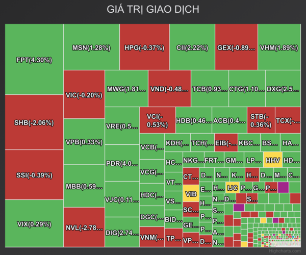 장말기에는 유동성이 급격히 개선되어 전체 시장의 총 거래량은 약 11억 6천만 주, 즉 35조 4,940억 동(VND)을 상회했다. HOSE 플로어만 해도 전 거래일 대비 26% 감소한 32조 1,250억 동(VND)의 거래량을 기록했다.