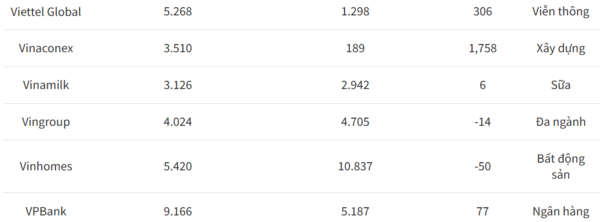 ▷ 비금융권 ‘Vinhomes’ 7위…Vinaconex 급부상