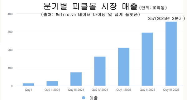 다른 피클볼 액세서리의 매출도 795% 증가했다. 시장에 참여하는 매장 수는 두 배로 증가하여 1,683개 부스에 달했으며, 5월 매출은 450억 동 이상으로 정점을 찍었다.