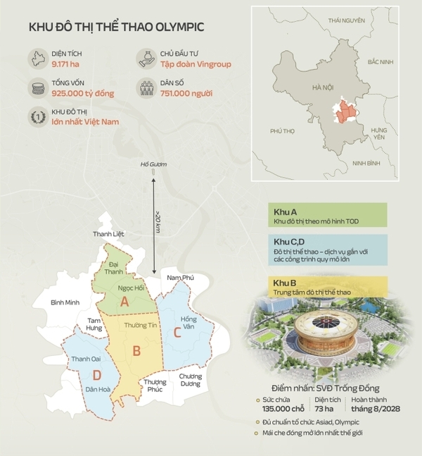 현재 검토 중인 환경영향평가(EIA) 보고서에 따르면, 빈그룹의 올림픽 스포츠 시티는 올림픽 도시, 지역 및 국제 스포츠 센터를 형성한다는 비전에 부합하는 핵심 국가 프로젝트이다.