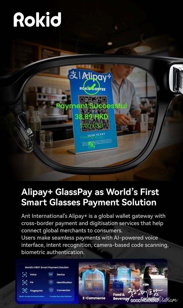 (굿모닝베트남미디어) 라스베이거스 2026년 1월 9일 -- 인간과 컴퓨터 간 상호작용과 증강현실 분야를 선도하는 기업 로키드(Rokid)가 글로벌 디지털 결제, 디지털화 및 금융 기술을 선도하는 기업 앤트 인터내셔널(Ant International)과 전략적으로 협력하여 최근 CES 2026에서 전 세계 최초로 공개된 세계 첫 오픈 생태계 AI 스마트 글래스 Rokid Glasses와 Rokid Ai Glasses Style에 결제 기능을 탑재한다고 밝혔다. 이는 AI 기반 웨어러블 기술의 실제 활용 분야를 확대하기 위한 포석이다.