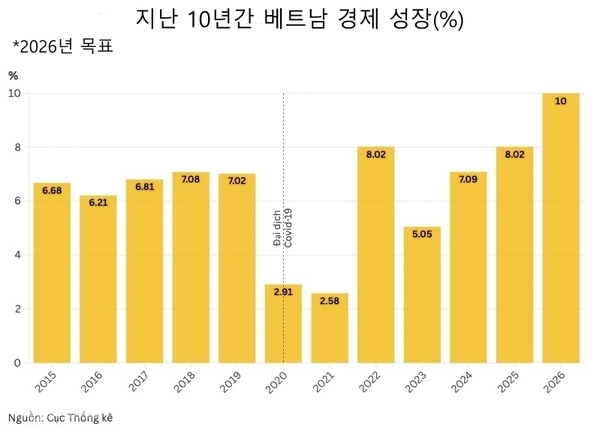 베트남은 2026년에 두 자릿수 경제 성장을 목표로 하고 있다. 이는 베트남의 5개년 경제 개발 계획에서 중요한 해로, 2030년까지 중상위 소득 국가, 2045년까지 고소득 국가로 도약하기 위한 발판을 마련할 것이다.