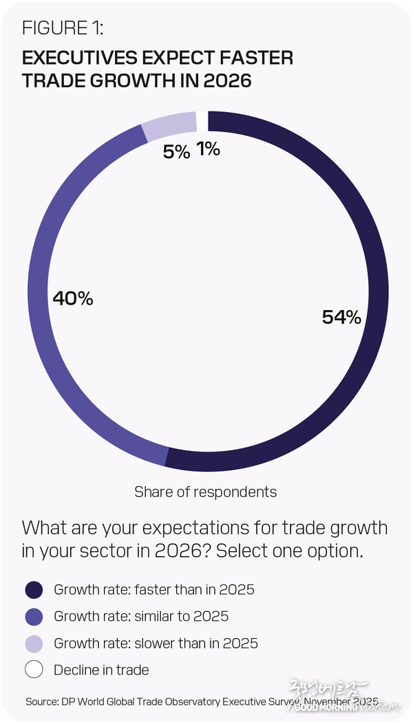 (굿모닝베트남미디어) 글로벌 무역 관측소 연례 전망: 관세, 비용 및 정책 불확실성에도 불구하고 94%가 2026년도 성장세를 2025년도와 유사 내지 상회할 것으로 예상