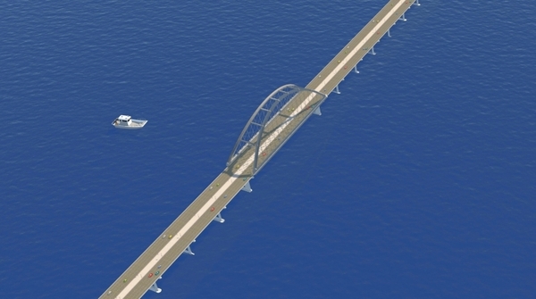 해상교 건설에는 약 137.5헥타르의 토지가 필요할 것으로 예상된다. 필요한 해역 면적과 제방 자재량은 추후에 상세히 결정될 예정이다.