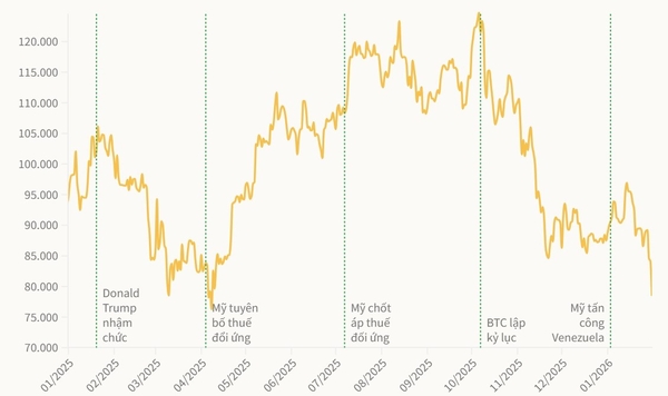 1일(현지 시각) 새벽 비트코인 가격은 한때 7만7600달러 선까지 떨어지며 연중 최저치에 근접했다. 이는 전날 같은 시간 대비 7.5% 이상 하락한 수준이다. 비트코인은 지난 한 주 동안 8만6000달러 안팎에서 비교적 안정적인 흐름을 보였으나, 1월 31일 밤부터 변동성이 급격히 확대되며 하락세로 전환됐다.