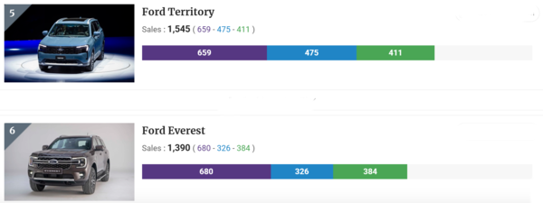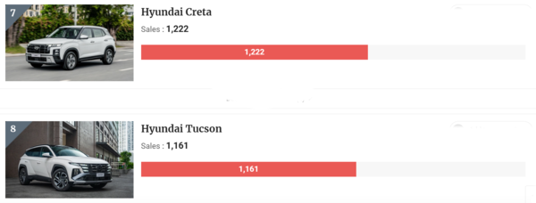 마쓰다 CX-5가 2,100대 이상 판매되며 2026년 첫 달에 가장 많은 판매량을 기록했고, 미쓰비시 엑스팬더와 포드 레인저가 그 뒤를 이었다.  일본차가 압도적인 우세속에  현대 크레터와 투산(베트남 전채 판먀량)이 판매 7, 8위에 들었다. (단, 전기차는 제외)