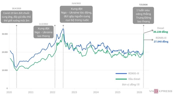 이에 정부는 가격 급등 시 기준가격 7% 이상 상승하면 즉시 소매가격을 조정하는 유연한 메커니즘을 허용했다. 3월 7일 조정 후 RON 95-III 휘발유 리터당 27,040 동(2022년 7월 수준), 경유 30,230 동을 적용 중이다.