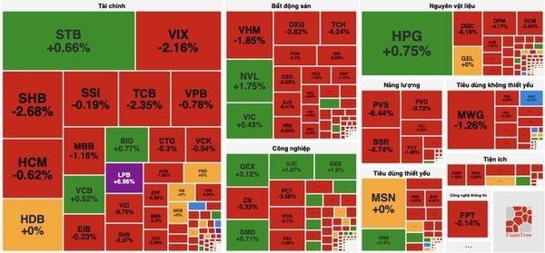 이번 거래에서 은행주는 하락 압력을 받아 TCB(-2.35%), VPB(-0.78%), MBB(-1.16%), SHB(-2.68%) 등 많은 종목이 하락했지만, STB(+0.66%)와 BID(+0.77%)는 상승세를 보였다.