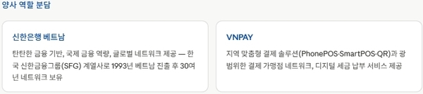 신한은행은 4월 8일 VNPAY와 전략적 파트너십 협약을 체결했다. VNPAY는 VNPAY-PhonePOS, VNPAY-SmartPOS, VNPAY-QR 등 첨단 기술 기반 결제 솔루션과 함께 전국 결제 네트워크를 활용한 디지털 세금 납부 서비스까지 제공하는 베트남 대표 핀테크 기업이다.
