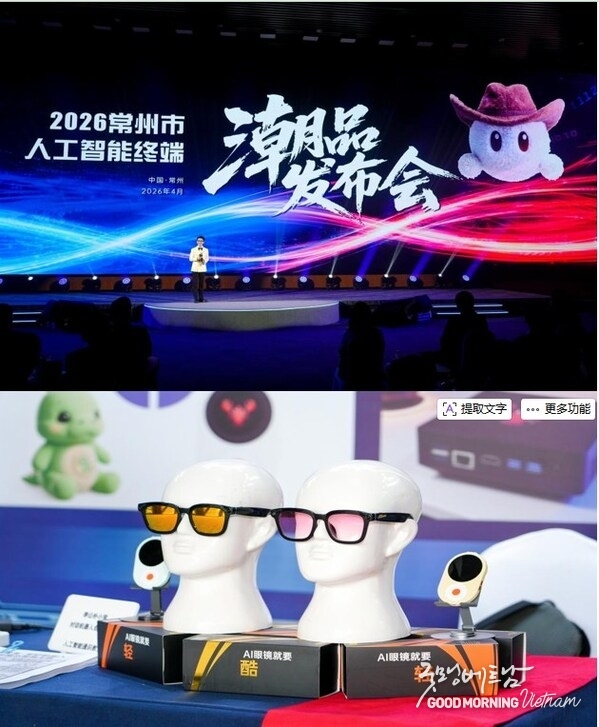 (굿모닝베트남미디어) 창수, 중국 2026년 4월 16일 -- '기기 역량 강화, 더 스마트한 삶 구현(Empowering Devices, Enabling Smarter Living)'을 주제로 한 2026 창저우 인공지능 단말 트렌디 제품 콘퍼런스가 4월 11일 개막해, 20개 기업이 총 27종의 인공지능 기반 기기를 선보였다. 전시는 일상 이동, 가정 생활, 업무 효율, 산업 응용 등 주요 활용 분야를 아우르며, 인공지능 기반 하드웨어 역량이 확대되고 있는 창저우의 현황을 보여줬다.