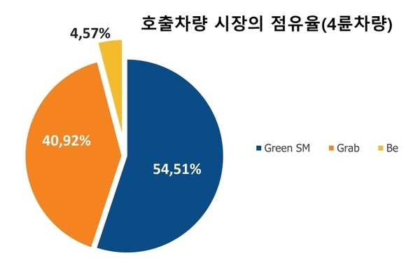 이에 따르면, 2026년 1분기 베트남 차량 호출 시장에서 그린 SM(Green SM)이 54.51%의 점유율로 선두 자리를 유지했다. 그 뒤를 그랩(Grab)이 40.92%, 비(Be)가 4.57%이다. 특히, 그린 SM은 18개월 연속 1위 자리를 지켰다.