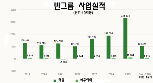 빈그룹은 올해 매출은 전년 대비 약 46% 증가한 485조 동을 목표로 한다. 세후 순이익은 35조 동에 이를 것으로 예상되며, 이는 2025년 목표치의 거의 3배이다. 따라서 빈그룹은 1분기 말 기준으로 연간 순이익 목표치의 16%를 이미 달성했다.