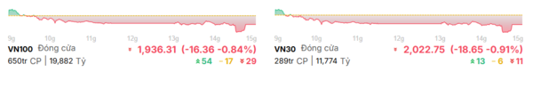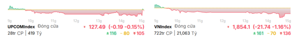 4월 29일 거래는 연휴를 앞두고 강한 매도 압력에 직면하며 하락세로 마감했다. VN 지수는 21.74포인트(1.16%) 하락한 1,854.10포인트로 장을 마쳤다. 한편, HNX 지수는 1.22포인트 상승한 250.66포인트로 소폭 상승세를 유지했고, UPCoM 지수는 127.68포인트로 거의 변동이 없었다. VN30 지수 역시 조정 국면에 접어들어 18.65포인트(0.91%) 하락한 2,022.75포인트로 마감했다.
