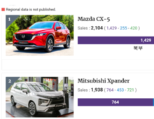 2026년 1월 1,118대를 판매한 도요타 비오스가 1위이다. 2위는 825대를 판매한 혼다 시티이다. 3위는 669대를 판매한 현대 엑센트이며, 마즈다사의 마즈다 3와 마즈다 2가 각각 406대와 328대로 4, 위를 차지했다. 여전히 소형 스용차 부문에서도 일본차가 두각을 나타낸다. 차량 판매가 많은 곳은 지역별로 북부, 남부, 중부 순이다. @GMVN