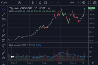 【굿모닝베트남 | 금융·증시】 빈그룹 주가가 강한 상승세를 이어가며 베트남 증시를 견인했다. 4월 16일 장중 빈그룹(VIC) 주가는 상한가까지 치솟아 189,300동을 기록했다. 이는 이틀 연속 상한가로, 사상 최고가를 새로 쓴 것이다. 빈그룹 주가 급등에 힘입어 VN-지수는 장중 한때 16포인트 가까이 상승한 뒤 매도 압력을 받았으나, 오전 10시 이후 대형주들의 지지로 반등하며 1,820포인트선을 테스트했다. 오후 들어 변동을 거듭한 끝에 VN-지수는 전 거래일 대비 19포인트 이상 오른 약 1,820포인트로 장을 마감했다. 그러나 시장 내부는 ‘겉은 녹색, 속은 빨간색’ 양상을 보였다. 호치민증권거래소(HoSE)에서 하락 종목이 전체의 3분의 2를 넘었고, 상승 종목보다 하락 종목이 2배 가까이 많았다(하락 213개). 전체 지수는 빈그룹을 비롯한 일부 그룹주의 강세에 의지한 모습이었다. 특히 VIC는 VN-지수 상승에 20포인트 이상을 기여했다. 장중 거래대금은 시장 전체 2위인 약 1,413억 동을 기록했으며, 오후 들어 매도 물량이 거의 없어 ‘매수만 있는’ 상황(blank sell)이 연출되기도 했다. 매수 주문이 매도 주문을 즉시 소화하며 강