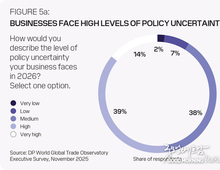 (굿모닝베트남미디어) 글로벌 무역 관측소 연례 전망: 관세, 비용 및 정책 불확실성에도 불구하고 94%가 2026년도 성장세를 2025년도와 유사 내지 상회할 것으로 예상 다보스, 스위스, 2026년 1월 21일 -- 글로벌 무역 전망은 취약해 보이지만 비즈니스 신뢰도는 그렇지 않다. 이는 DP 월드(DP World)의 신간 글로벌 무역 관측소(Global Trade Observatory, GTO) 2026 연례 전망 보고서(Annual Outlook Report 2026)의 요점으로, 응답자의 94%가 마찰과 변동성 증가에도 불구하고 2026년도 무역 성장세가 2025년도와 비슷하거나 이를 상회할 것으로 예상했다. 이번 결과는 다보스에서 열리는 세계경제포럼(World Economic Forum) 연례 회의를 앞두고 8개 산업 분야와 19개국에 포진한 3500명의 공급망 및 물류 고위 경영진을 대상으로 실시한 설문조사를 기반으로 한다. 전체적으로 54%는 무역 성장이 2025년보다 빠를 것으로 예상했고 40%는 동일할 것으로 내다봤다. 이는 53%가 정책 불확실성이 높거나 매우 높을 것으로 예상하고 90