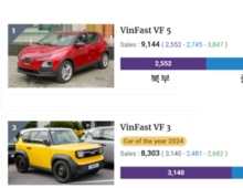빈패스트 VF 5는 9,144대로 가장 많이 팔았고, VF 3는 8,303대로 2위, 헤리오 그린은 6,696대로 3위를 차지했다. 1위에서 4위까지 모두 자국 빈패스트 전기차량이 차지했다.