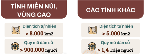 국회 산하기관 상임위원회 결의 1211호에 따르면 고지대 인구는 90만명 이상, 자연 면적은 8천km2 이상이다. 나머지 지방의 경우 인구 140만명 이상, 자연 면적 5천km2 이상의 기준을 충족해야 한다. 150만명의 인구가 거주하는 중부 도시의 경우, 자연 면적이 1천500km2 이상에 이른다.