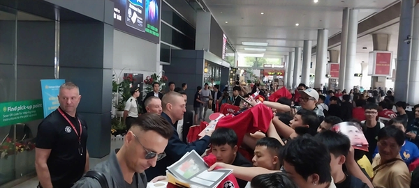 맨체스터 유나이티드의 두 레전드, 디미타르 베르바토프와 네마냐 비디치가 떤선녓 공항에 도착하자 호치민시는 뜨거운 열기로 가득 찼다. 열광적인 팬들이 공항을 가득 메웠다.
