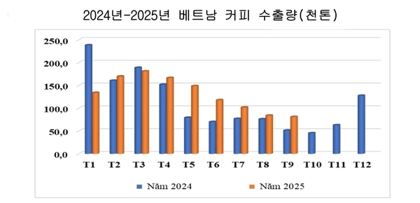 주요 시장별로는 독일, 이탈리아, 일본, 미국 등으로의 9월 수출이 작년 동월 대비 전반적 성장세를 나타냈다. 상반기 9개월간 EU와 미국이 여전히 주요 성장 동력으로 부각됐으며, 알제리와 멕시코 등 일부 시장의 수출이 급증해 베트남 커피의 개발 여지를 넓히고 있다.