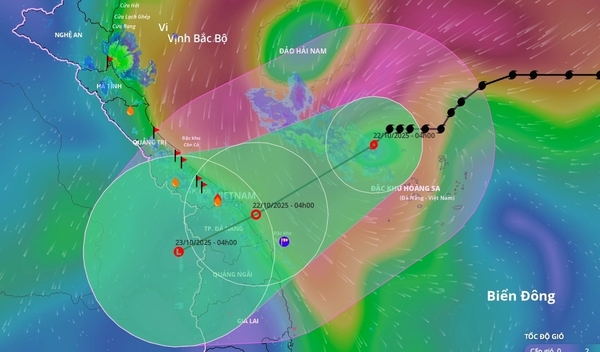 국가수문기상예보센터는 태풍 순환, 찬공기, 동풍 교란과 지형적 영향이 10월 22일부터 27일까지 하띤-꽝아이 지역에 매우 많은 비가 내릴 것으로 예상하며, 오늘 정오부터 내일 아침까지 집중호우가 내릴 것으로 전망했다.