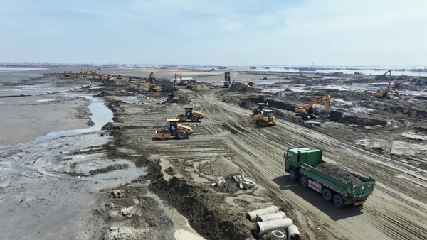 공사 현장은 분주하게 움직이고 있다. 주요 도로는 아스팔트로 포장되었고, 양쪽 도로변 조경 공사도 점차 마무리되고 있다.
