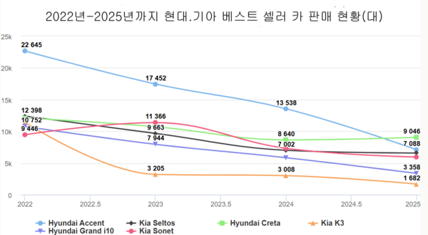 현지 업계 전문가는 "한국차의 최대 강점이었던 '저렴한 유지비'와 '옵션'이 소형 전기차의 등장으로 빛을 잃었다"며 "SUV 선호 추세까지 겹치면서 액센트, K3 같은 전통적인 세단 모델들도 설 자리를 잃고 있다"고 분석했다.