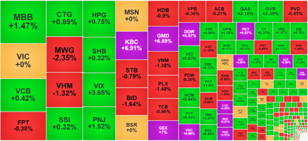 호치민시 증권거래소의 거래량은 33조 동을 넘어섰으며, 이는 주 초반과 큰 차이가 없는 수준이다. MBB가 1조 4천억 동 이상의 거래량으로 유동성 부문 1위를 차지했고, VIC와 VCB가 각각 1조 VND 이상을 기록하며 그 뒤를 이었다.