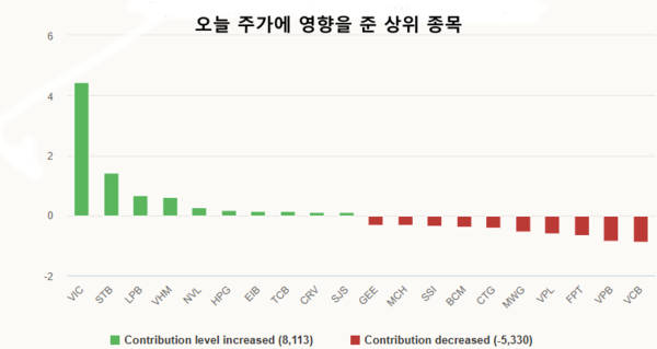 VN디렉트 증권사에 따르면 사콤뱅크는 VN-지수에 약 1.4포인트 기여하며 지수 급락을 일부 방어한 것으로 분석됐다. 그러나 시장 전반적으로는 약세 분위기가 우세했다.