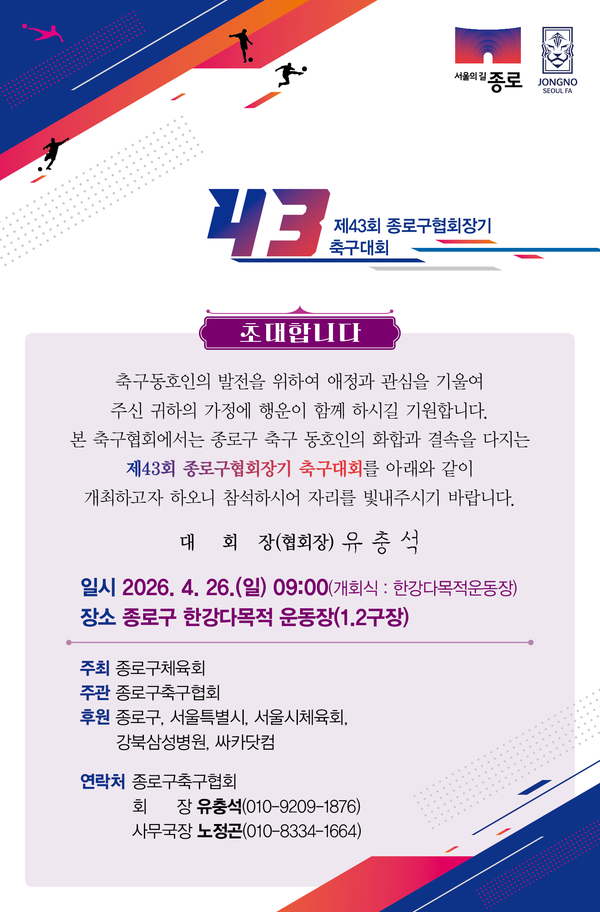 공지 제 43회 종로구협회장기 축구대회 새글 이정국 2026/04/12 67 0
