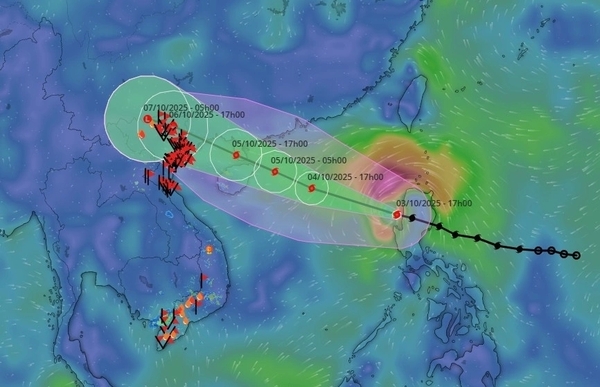 태풍 '마트모(Matmo)'가 필리핀 루손섬을 지나 동해로 진입하며, 5일 오전 통킹만으로 들어설 것으로 예상된다. 이로 인해 베트남 북부와 탄호아 지역에 호우가 발생할 전망이다.