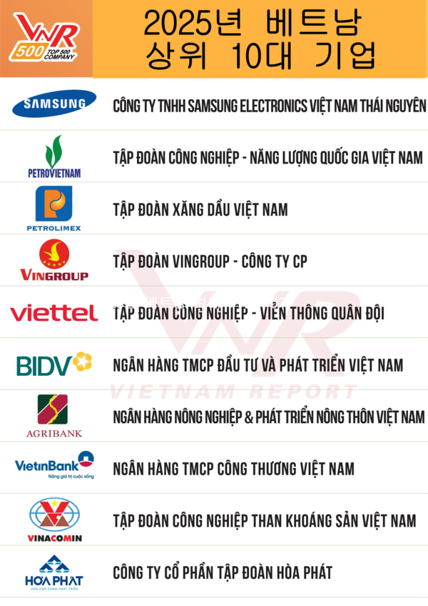 2025년 11월 12일, 베트남 리포트(Vietnam Report Joint Stock Company, 이하 베트남 리포트)는 비엣남넷(VietNamNet) 신문과 공동으로 2025년 베트남 500대 기업 순위(VNR500 Ranking)를 발표했다.