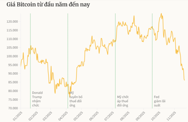 이날 베트남 시간 기준 비트코인 가격은 장중 8만6000달러까지 떨어진 후 8만7000달러 선에서 반등했다. 지난 24시간 동안 6% 이상 하락했으며, 10월 초 사상 최고가 12만6080달러 대비 31%나 떨어진 수준이다. 옵션 플랫폼 '더라이브(Derive)'에 따르면, 올해 말 비트코인이 9만달러 아래로 마감할 확률은 50%로 상승했다. 반면 10만달러 초과 마감 확률은 30%로 하락했다. 비트코인은 50일선과 200일 이동평균선을 모두 하향 돌파하며 기술적 약세를 확인했다.