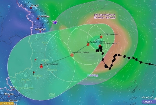내일 오전 4시경, 태풍은 자라이-닥락 성 동해안에서 동쪽으로 약 340km 떨어진 동해 중부 북서쪽 해상에 상륙할 것으로 예상되며, 풍속은 레벨 9, 돌풍은 레벨 11로, 시속 3km로 북상할 것으로 예상된다.