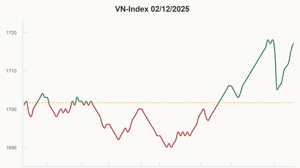 종가 기준 VN 지수는 1,717포인트를 상회하며 어제 대비 15포인트 이상 상승했다. 이는 5거래일 연속 상승세를 보이며, 주가는 10월 중순, 즉 6주 전 가격대로 회복했다.