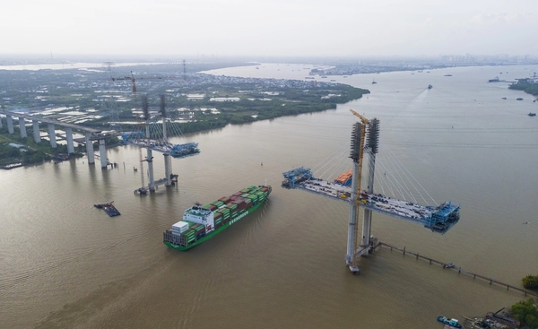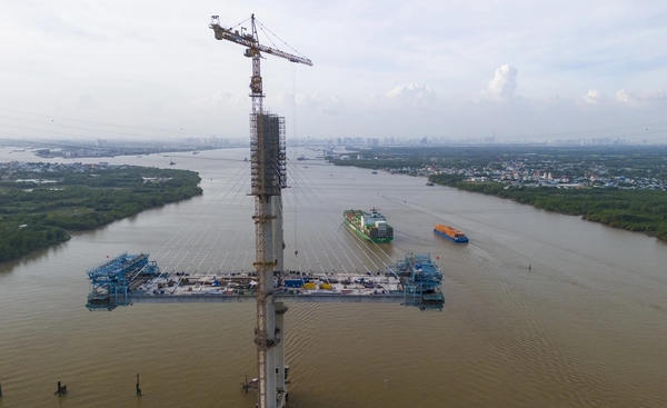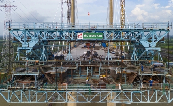 첫 번째 사장교가 설치된 지 3개월 만에, 껀저와 연짝(이전 명칭) 두 지역을 연결하는 푸옥칸 다리가 6번째 케이블 부문까지 설치되었으며, 다리 상판은 롱따우 강 위로 뻗어 있다.