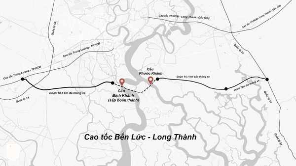 이 고속도로는 일반 차량 4차선과 비상 정지 차선 2개를 갖추고 있으며, 최고 속도는 시속 100km이다. 남부 지역 최대 규모의 고속도로 건설 사업으로, 동부와 남서부 지역을 연결하고 호치민시 도심의 교통 체증을 완화하는 역할을 한다. 그러나 투자 정책의 어려움과 자금 부족으로 사업 진행이 지연되었다.