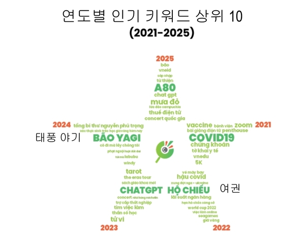 베트남 국민의 2025년 온라인 검색 행태가 기술과 AI 중심으로 재편되며, 국가적 이슈와 국내 콘텐츠에 대한 관심이 크게 높아진 것으로 나타났다. 이는 불안정한 사회 환경 속에서 정보를 적극적으로 모니터링하고 선택적으로 소비하려는 경향을 반영한다.