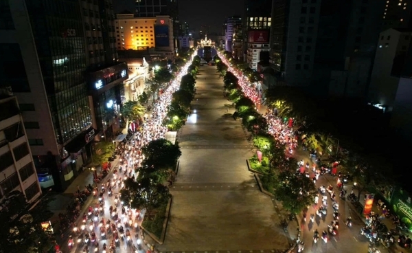 똔득탕 거리와 응우옌후에 보행자 거리가 만나는 교차로에 수많은 사람들이 몰려들었다.
